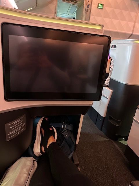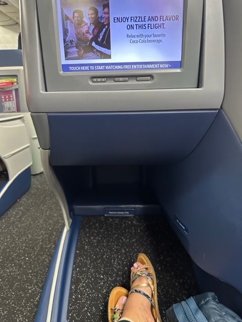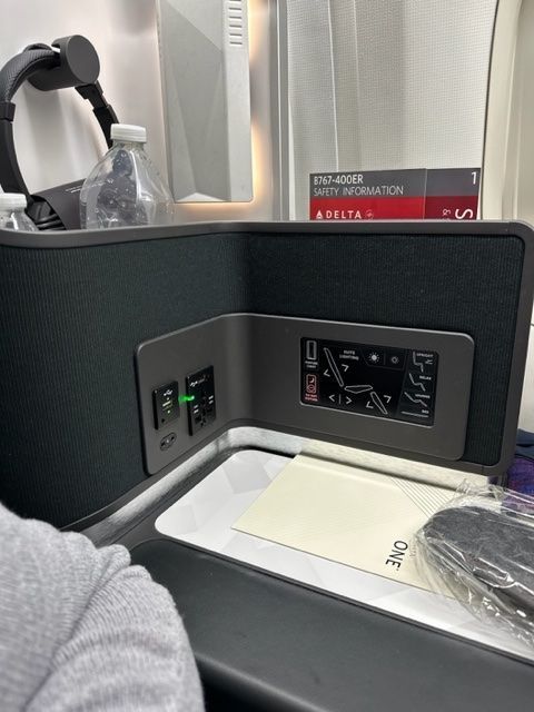 Another good feature of Delta One is the space. Not only the seat is very spacious but the leg rooms is huge! Of course is required because the seat flats 180 degrees so you can have a well rested flight and most importantly you can stretch! I will like to mention, that the seat also serves as a recliner. So, if you don't want to lay completely flat you can recline it, raise your legs, and watch three movies like I did on my way back to the US. If you like to watch movies during your flight, you may enjoy a larger monitor depend on your aircraft.